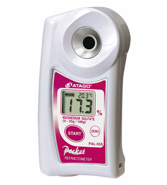 ATAGO(愛拓)便攜式數顯硫酸鎂折射計/硫酸鎂濃度計 PAL-55S,適用於檢測醫藥試劑中的硫酸鎂濃度。
